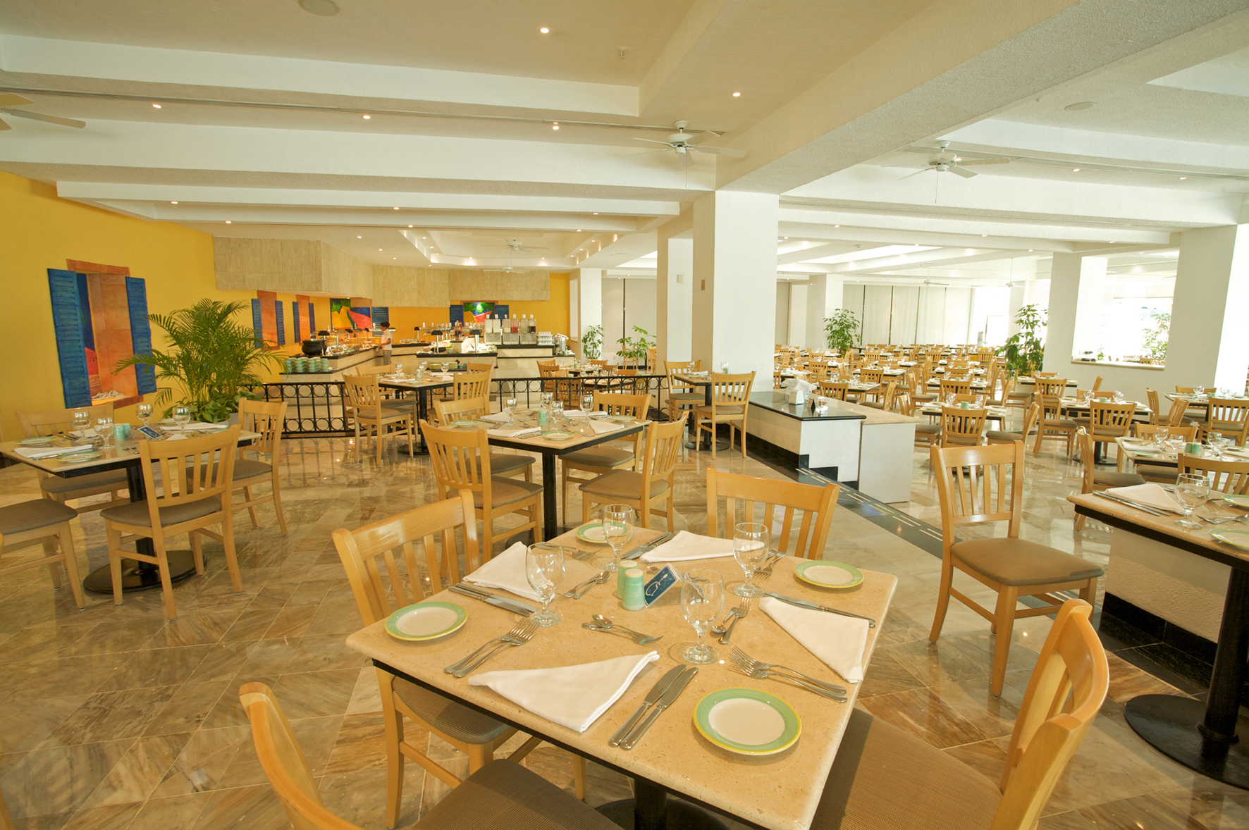 cuatro restaurantes tipo bufet o a la carta, dos bares que ofrecen bebidas